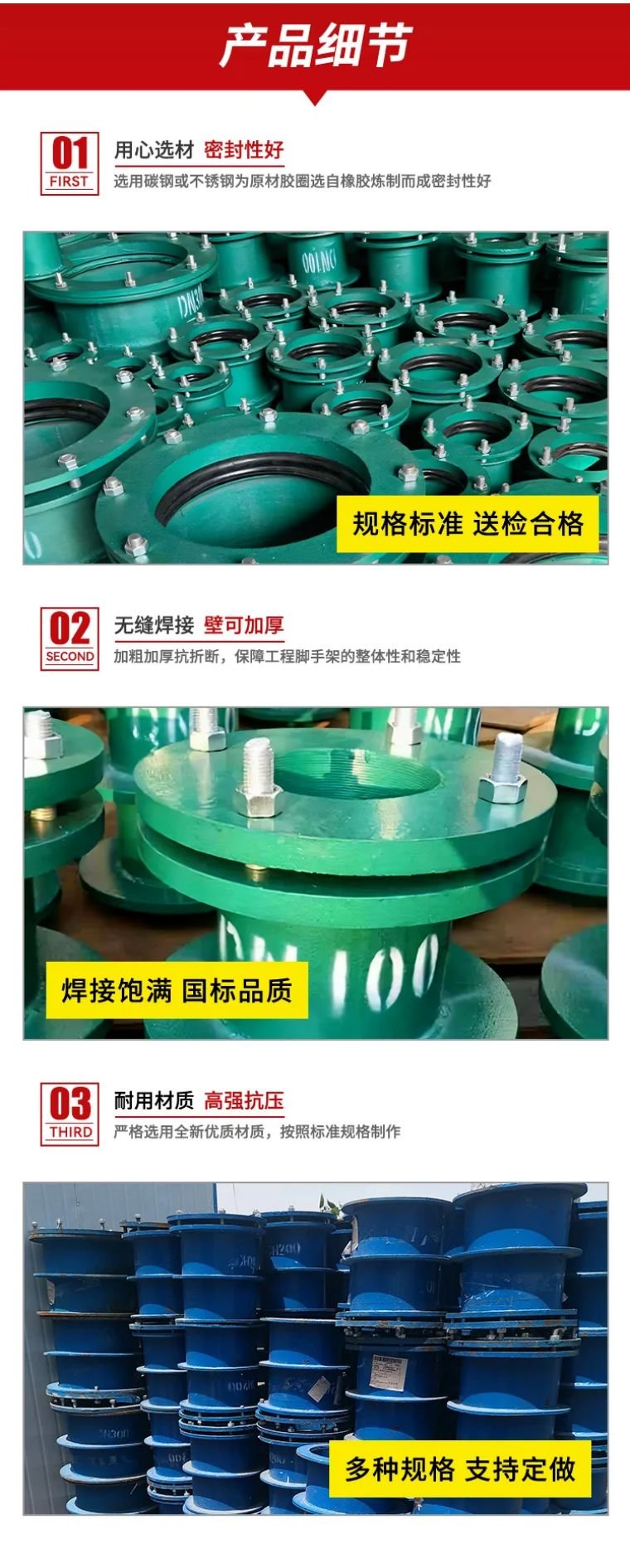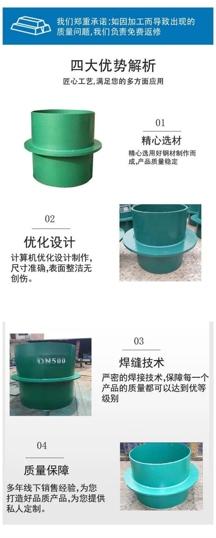 3. 結構設計:鋼制穿墻套管的結構設計合理,能夠有效防止外界水分進入管道系統內部,保證管道系統的正常運行。