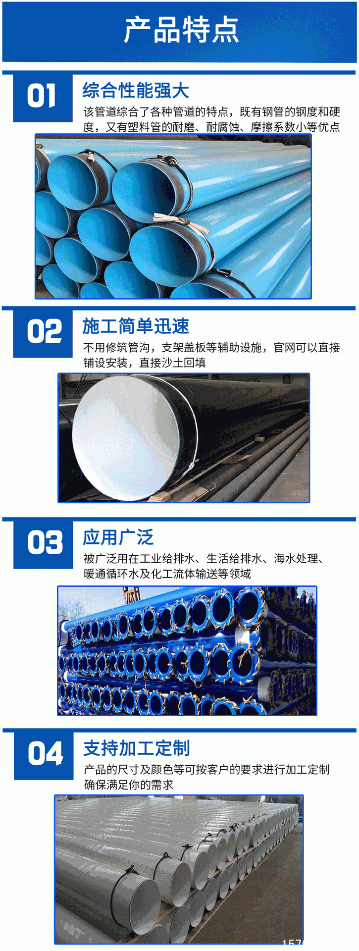 • 機械強度高:與普通鋼管具有同等優(yōu)良的機械強度,對沖擊、彎曲及壓力的承受力強,使用壓力范圍通常≤5.0MPa。