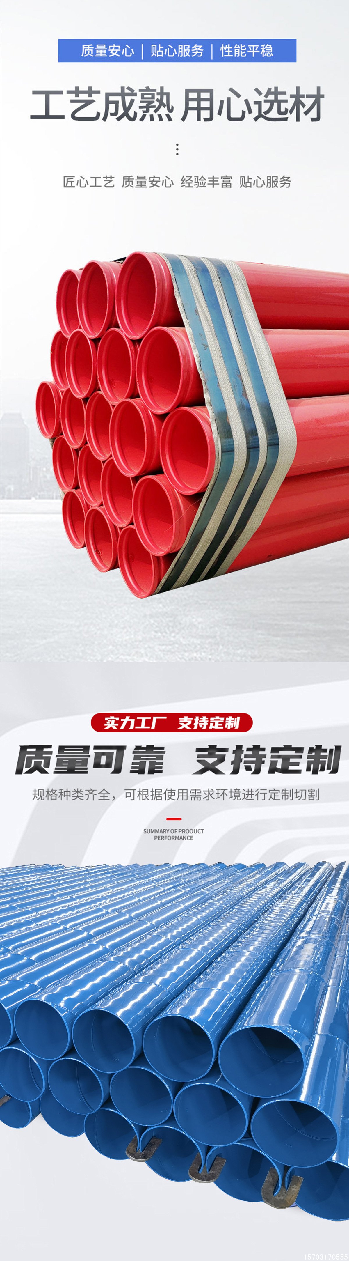 涂塑鋼管主要分為內涂塑鋼管和內外涂塑鋼管兩種類型,涂層材質一般采用環氧樹脂和聚乙烯,也可根據客戶的要求配套定做。涂塑鋼管有效的解決了以往鋼塑復合管在生產及安裝方面的缺陷,受到了眾多客戶的好評和認可。