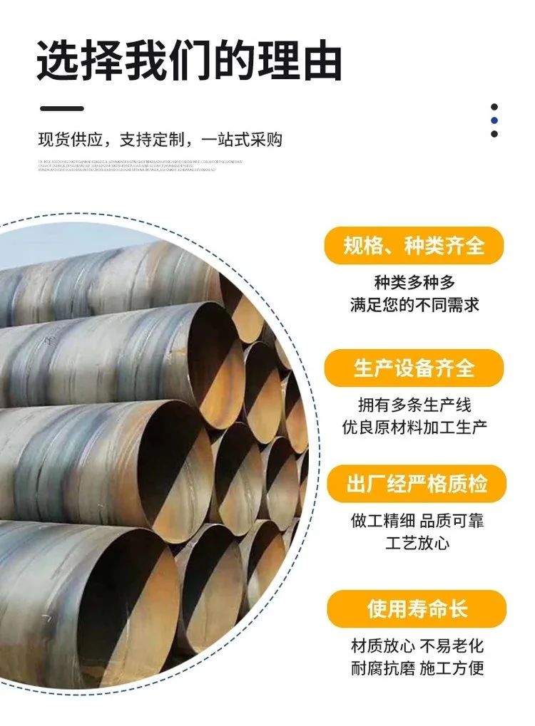 DN900國標螺旋鋼管的制造首先開始于高質量的原材料準備。主要采用的是具有一定機械性能和耐腐蝕性能的優質鋼材。在選材過程中,要確保鋼材的化學成分、力學性能和焊接性能都滿足國家相關標準的要求,且原材料應無裂縫、夾渣、分層和折疊等缺陷。